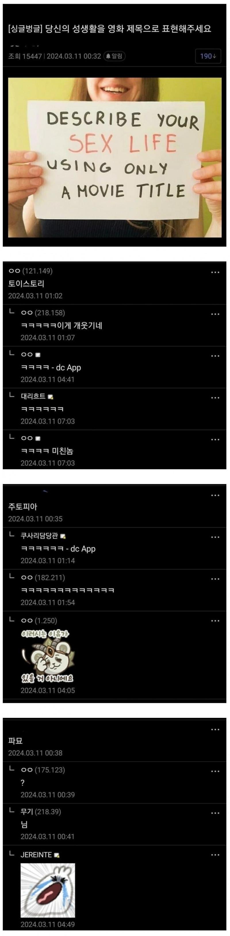 당신의 섹스라이프를 오직 영화제목으로만 표현해주세요