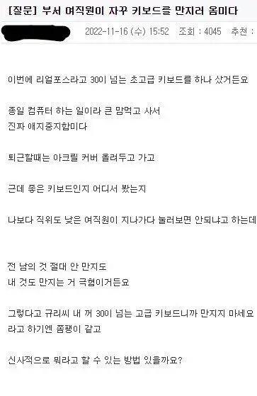 부서 여직원이 자꾸 키보드를 만지고 싶어해요.