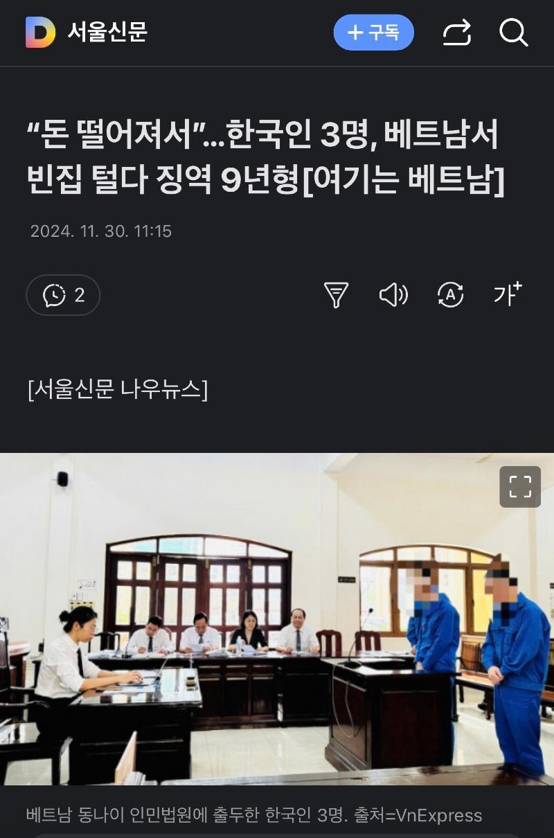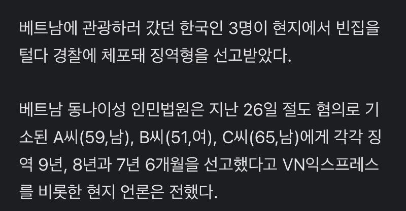 "돈떨어져서"..한국인 3명 베트남서 빈집털다 징역 9년형
