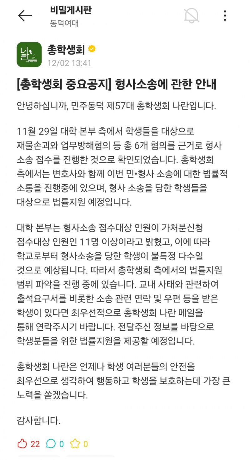 ㄷㄷㅇㄷ 애타에 올라온 총학 공지