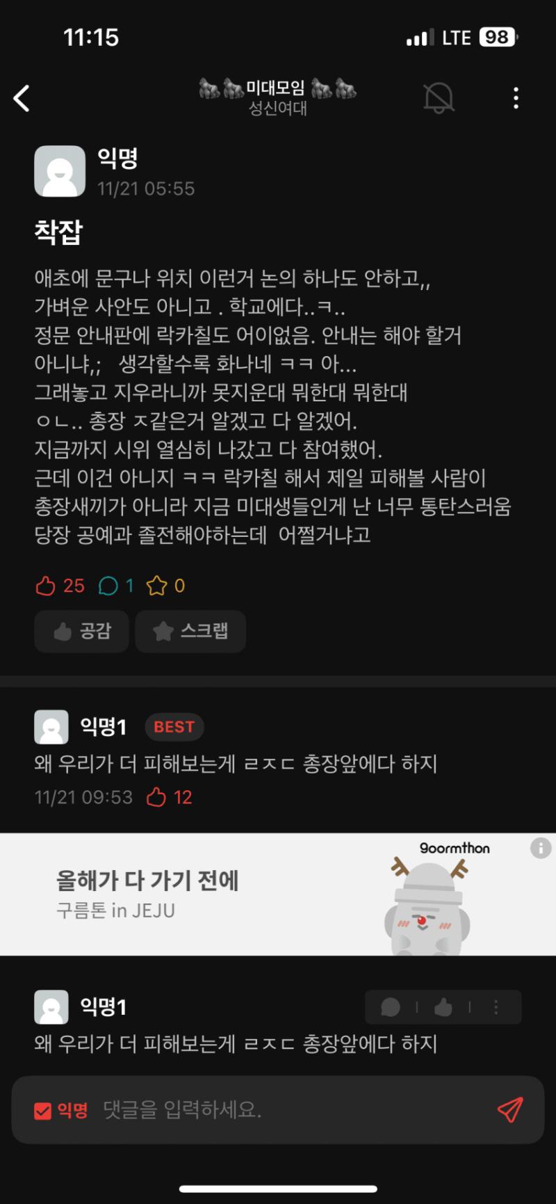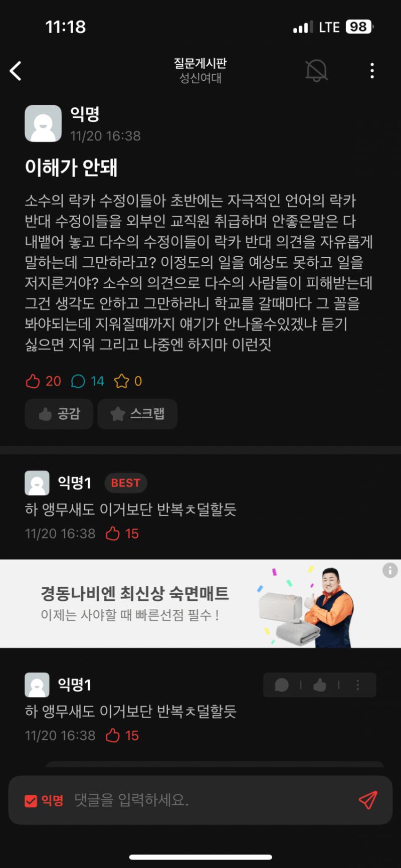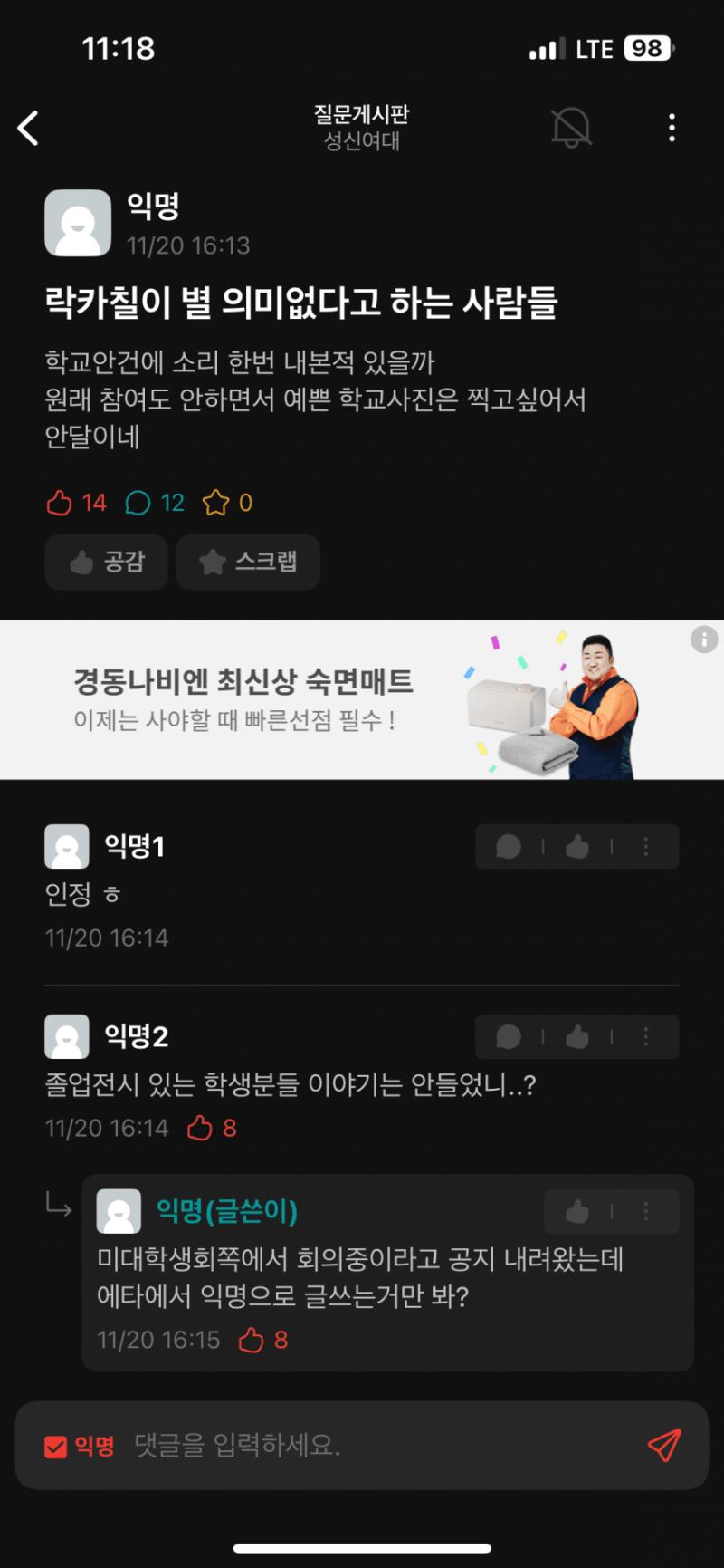ㅅㅅㅇㄷ 재학생이 올린글