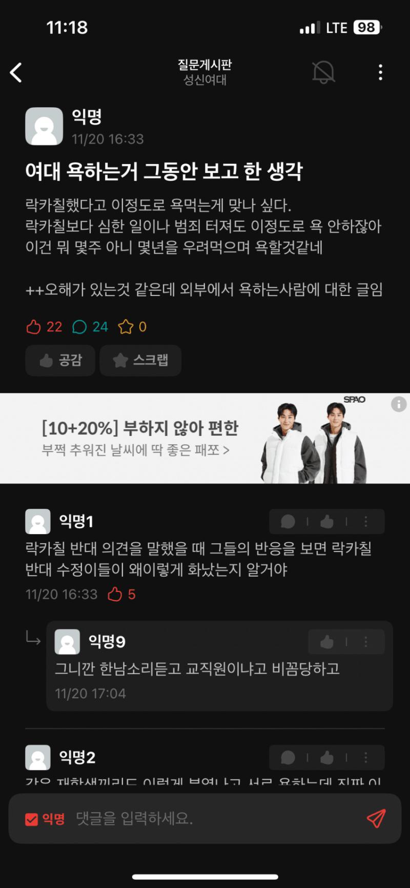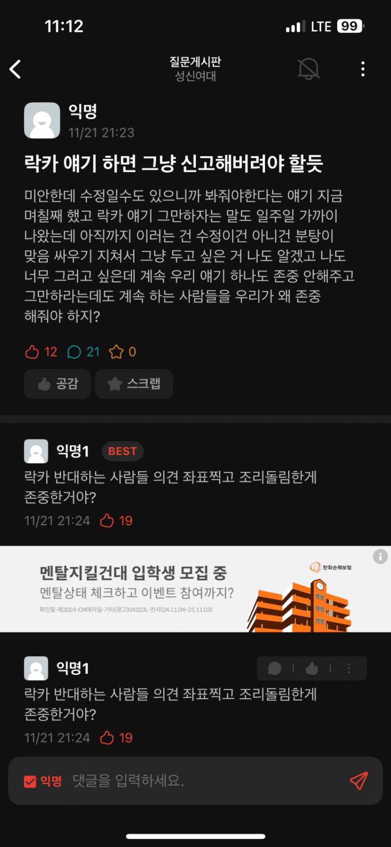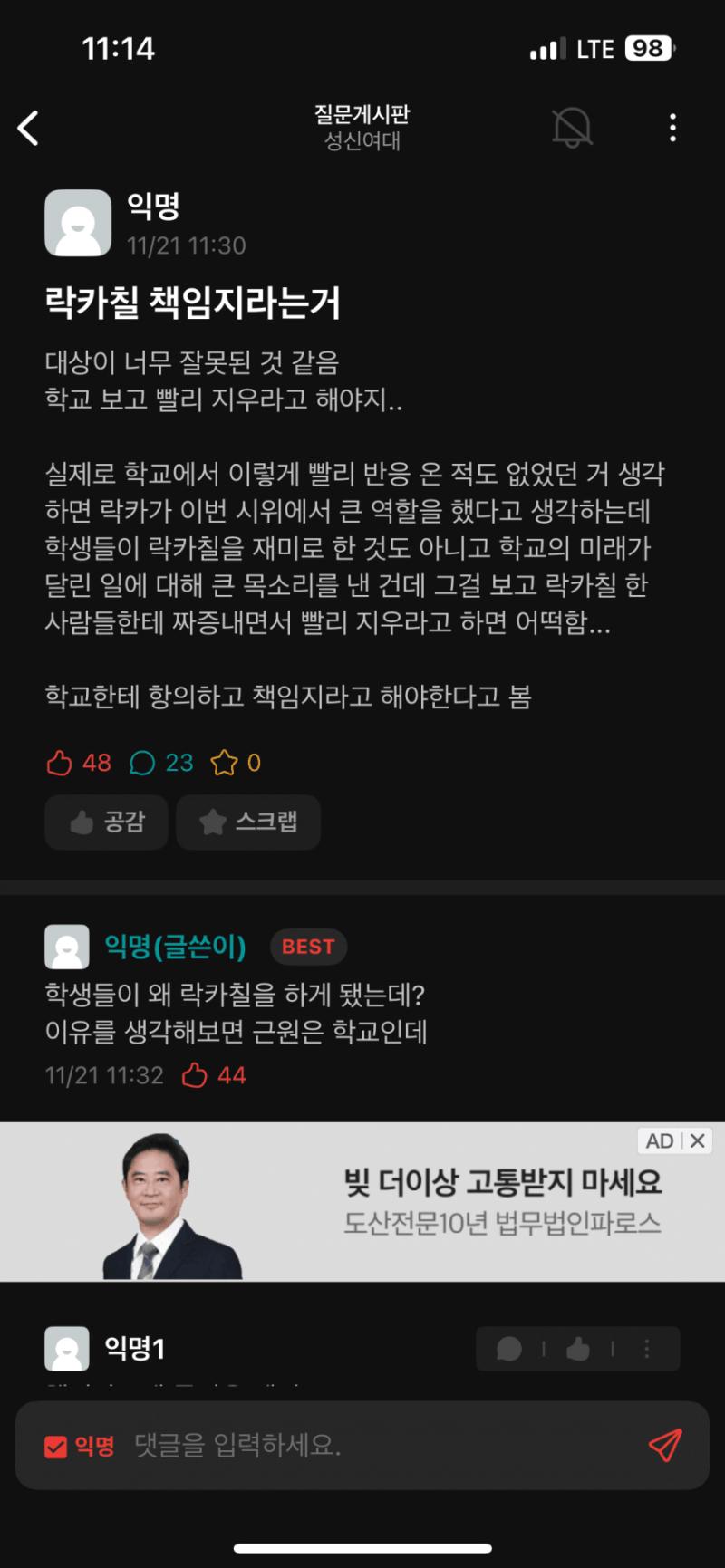 ㅅㅅㅇㄷ 재학생이 올린글
