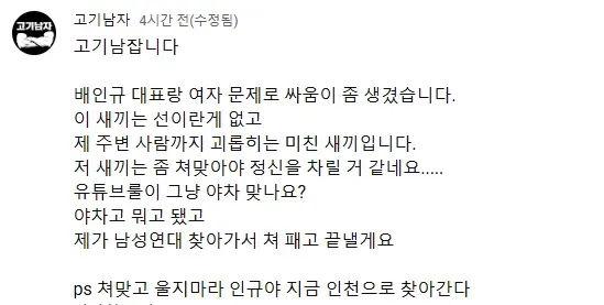 오늘 유튜버간 현피싸움 생중계 요약