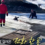 연못 속 얼어가는 엘크 구조나선 소방구조대
