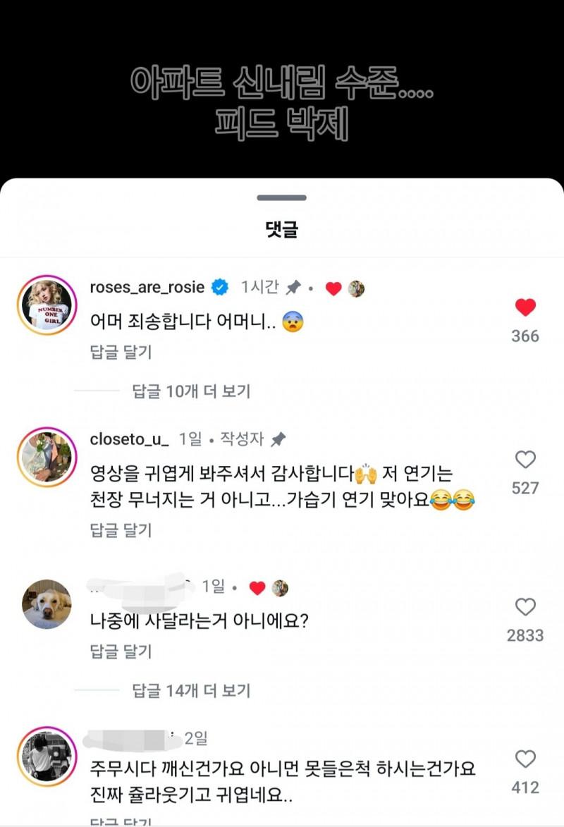 애기가 아파트 노래 부르는걸 본 로제의 반응