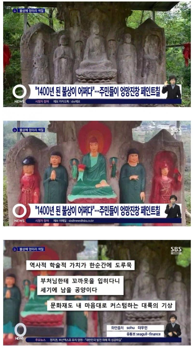 1400년 된 불상에 페인트칠한 사람들