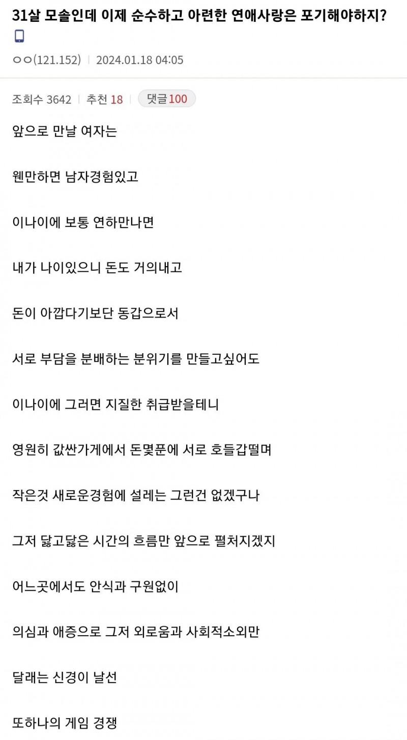 31살 모솔 이제 순수한 연애는 포기해야하지.jpg