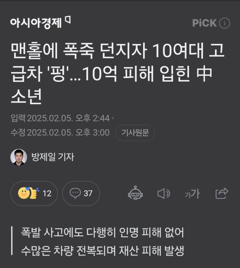 ---------------------------------------------------------------- 폭탄빼고 다 터진다! 지금은 뻔뻔한데 피해보상 맞으면 착해지겠지 | 제목 | 글쓴이 | 조회수 |