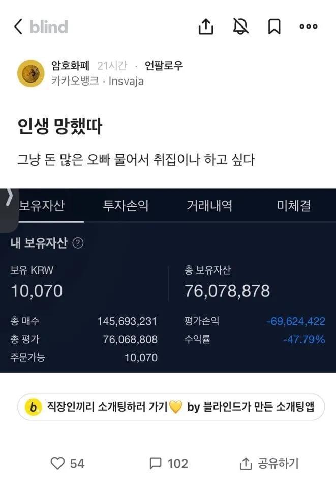 ---------------------------------------------------------------- 잘 모르지만 코인 안한 내가 승리자? | 제목 | 글쓴이 | 조회수 |