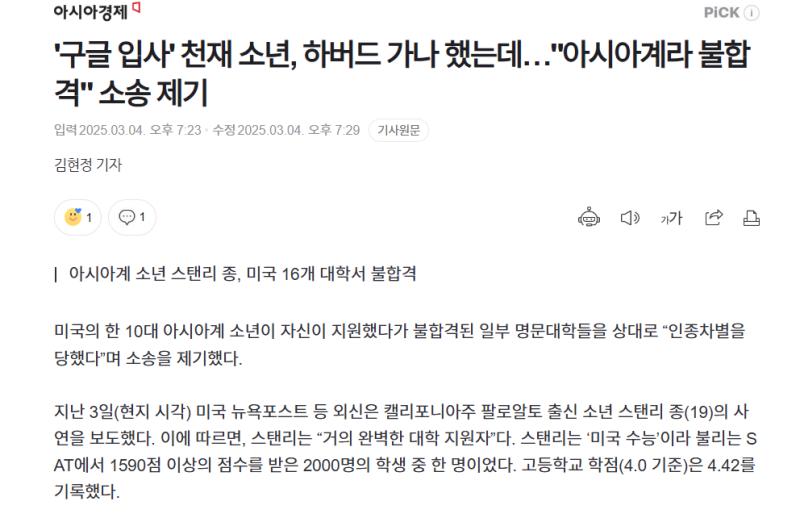 '구글 입사' 천재 소년, 하버드 가나 했는데…"아시아계라 불합격"