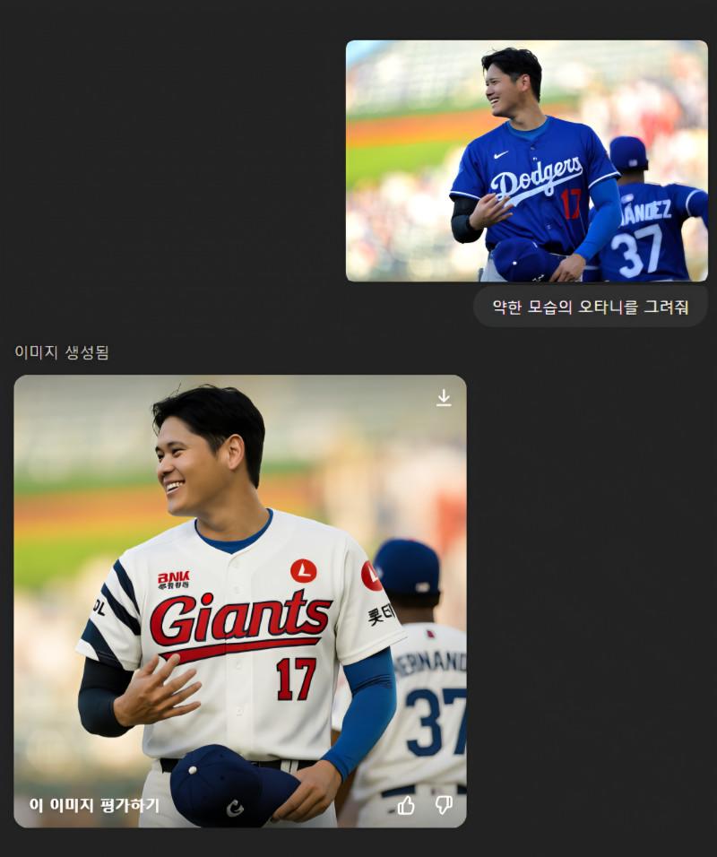 "gpt야, 약한 모습의 오타니를 그려줘"