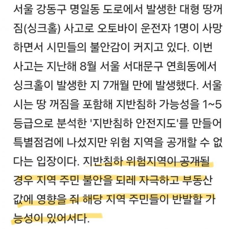 서울시 싱크홀 지역 알지만 공개못하는이유!!!