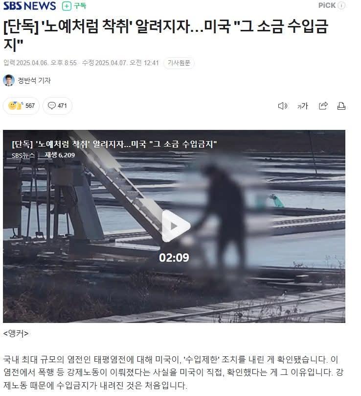 염전노예 때문에 수입금지됨. 나라망신 | 제목 | 글쓴이 | 조회수 |