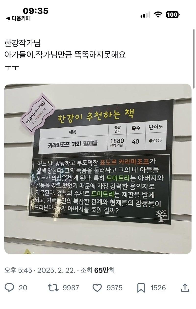 작가님하... 애들한테 어려운 책 추천한다고 동생한테 쌍욕먹은 나도 이거 추천은 안해;;; | 제목 | 글쓴이 | 조회수 |