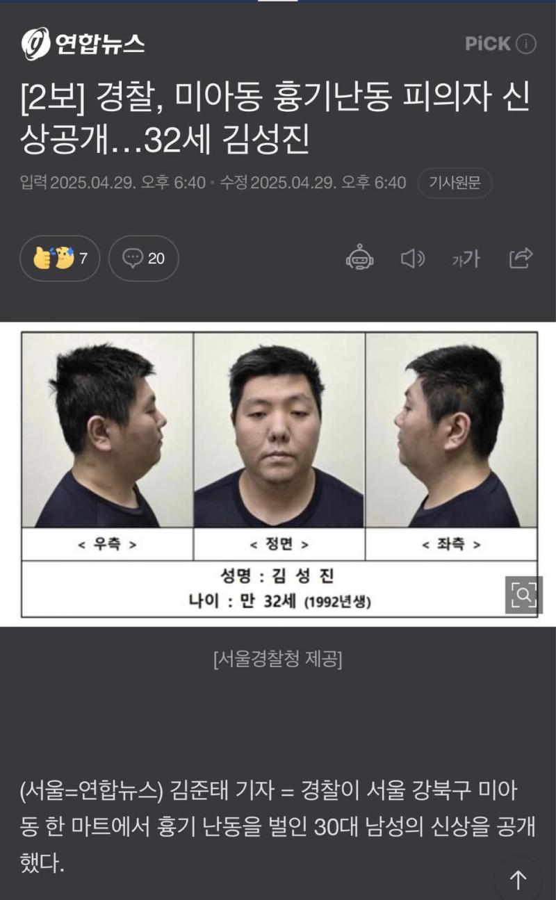 미아동 흉기난동 살인범 신상공개
