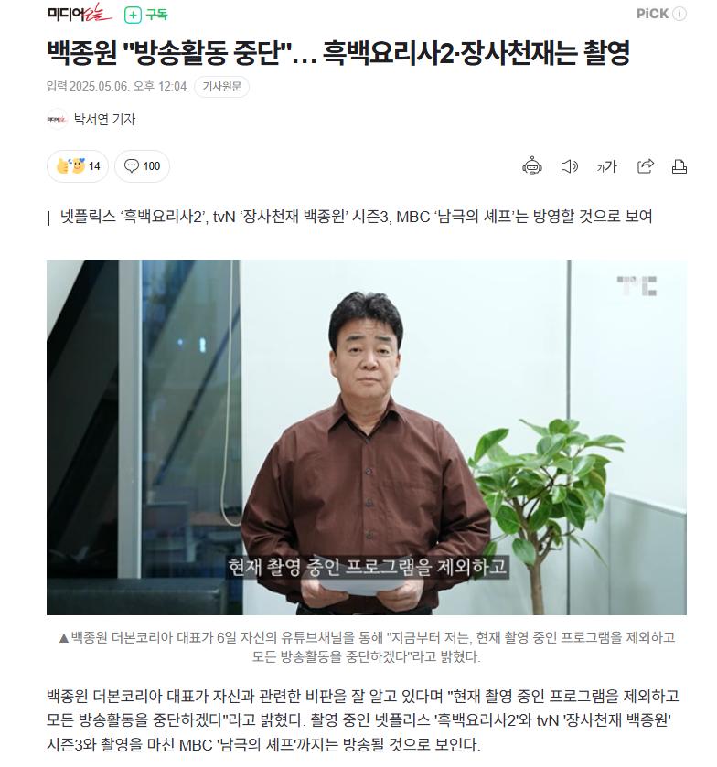 방송활동 중단한다고 속보로 알려 주길레 내용이 뭔지 좀 더 알아보니 현재 찍는중인 방송은 다 한다고 말함 ㅋㅋㅋ 이게 어떻게 방송활동 중단이냐? 두꺼비 말장난 보소 ㅋㅋ 두꺼비 유튜브 가보면 좋아요 싫어요 숫자 안보이게 막아놓고 댓글사용도 막아놈 ㅋㅋㅋ 말로는 사과 한다고 하는데 행동은 말과 다르네 ㅋㅋ 언행불일치 장난 아냐 ㅋㅋ