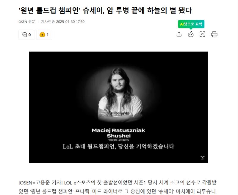 원년맴버. 몰랐지만 마음이 아포 어린데 죽다니 ㅠ