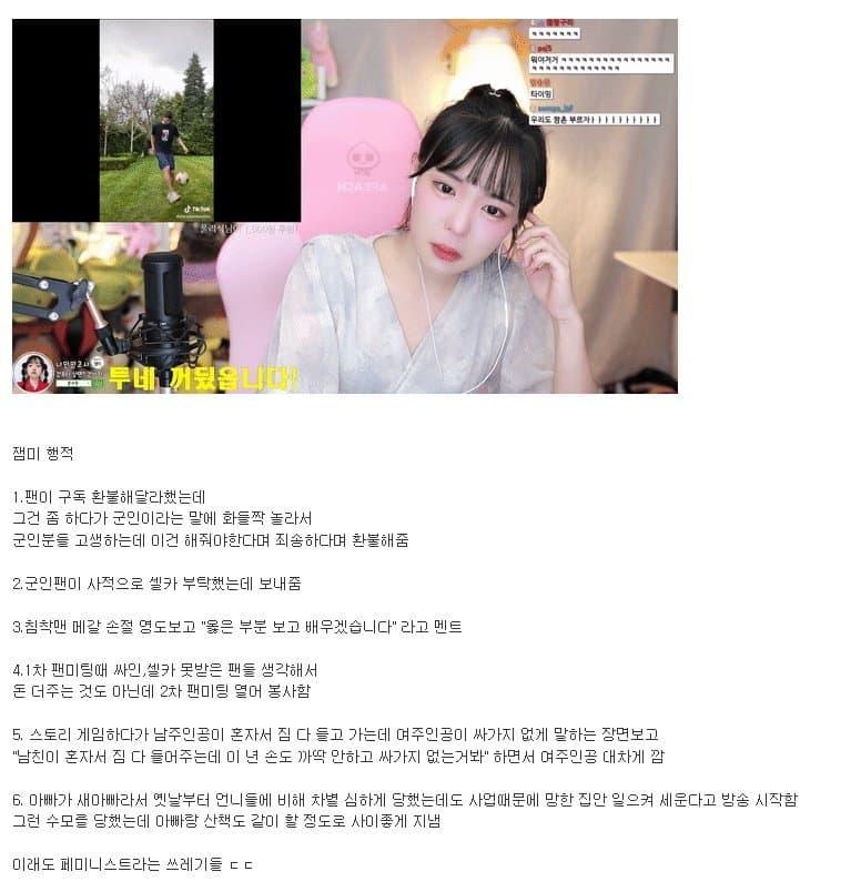 익명이란 가면 뒤에 숨어 뻑가와 뻑가 팬들과 펨코, dc의 악질 유저들이 죽인 bj잼미. 잼미는 평소 군인 잘 챙기고, 페미사상과 관련도 없었으며 페미 용어 쓴 적도 없음