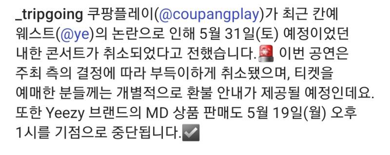 칸예 내한공연 취소 비하인드