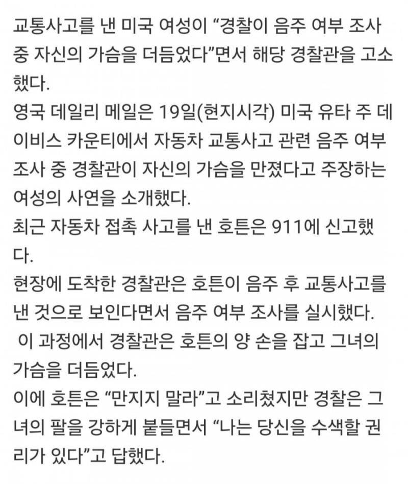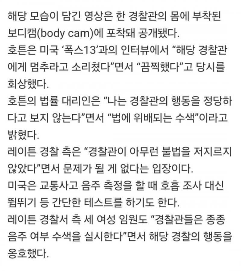 옹호할 수 밖에 없는게 경찰관 손을 잘 보면 손바닥이 아니라 엄지로 수색을 진행함. 어찌보면 최대한 배려해 주는 모습