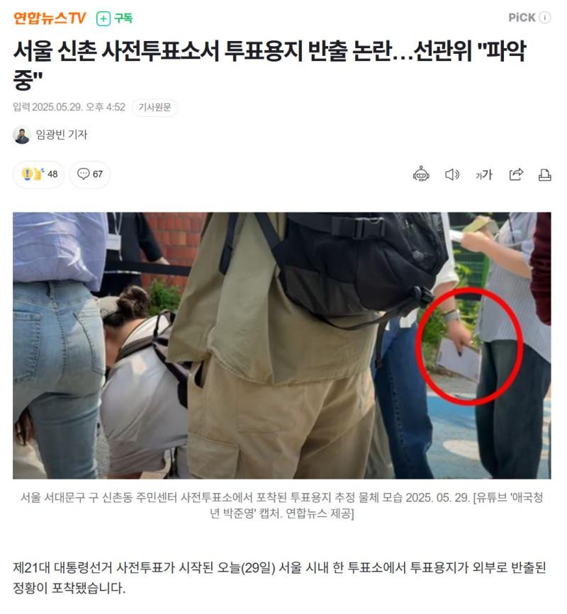 중앙선거관리위원회 관계자 “투표용지를 투표소 밖으로 가지고 나가선 안 된다는 명확한 법 규정은 없다”