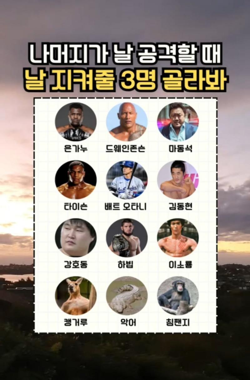 나머지 사람들이 나를 공격할 때 나를 지켜줄 세 명을 골라보세요.