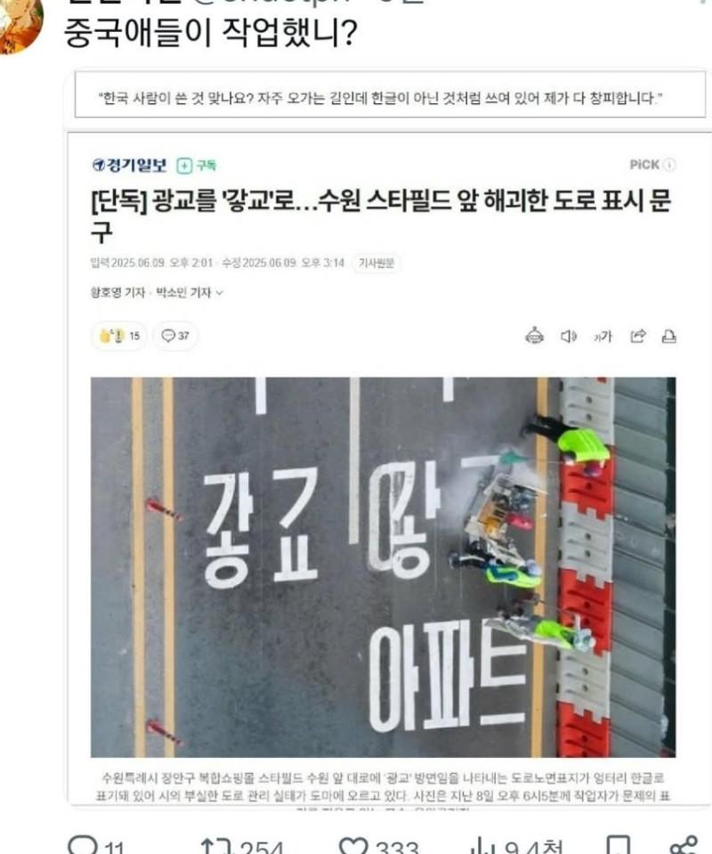 수원 스타필드 앞 해괴한 도로표시 문구