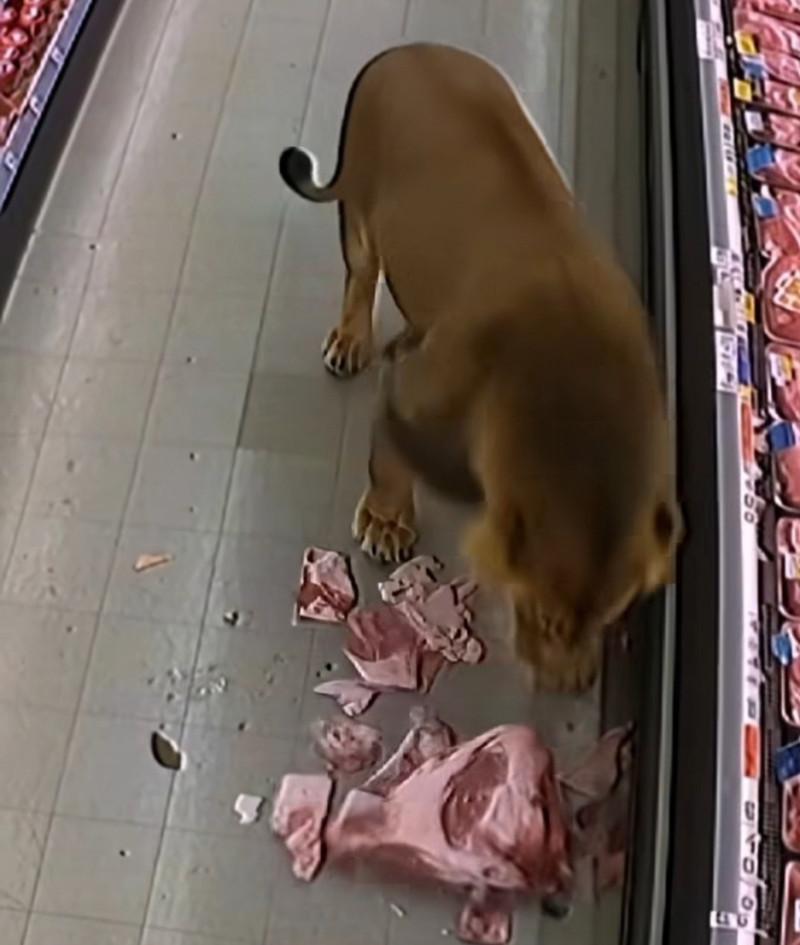 다행히 고기에 정신이 팔린 사자는 마취총을 맞고 금방 잡혀감