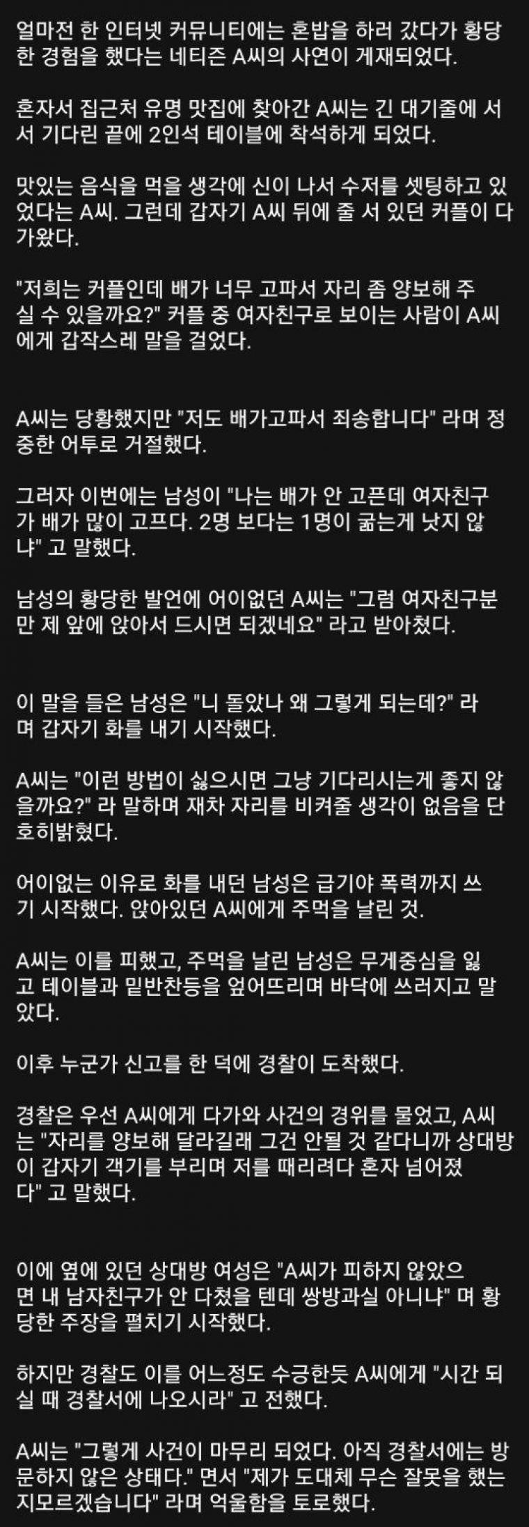 혼밥하러갔다가 경찰서가게된 사연