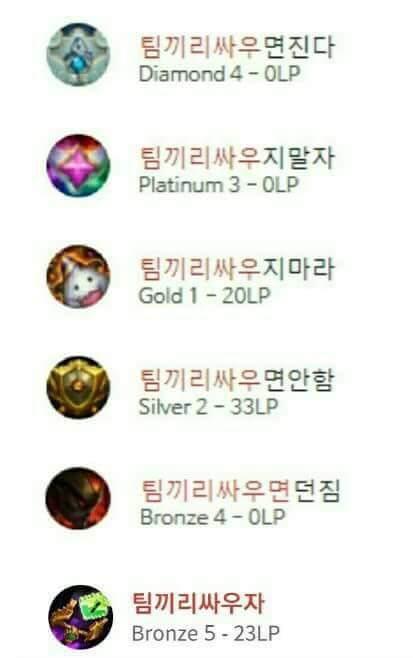 +팀끼리싸우자는 지금 아이언 4다 | 제목 | 글쓴이 | 조회수 |