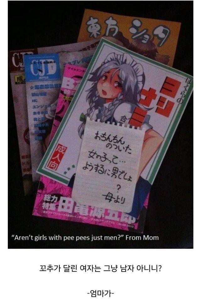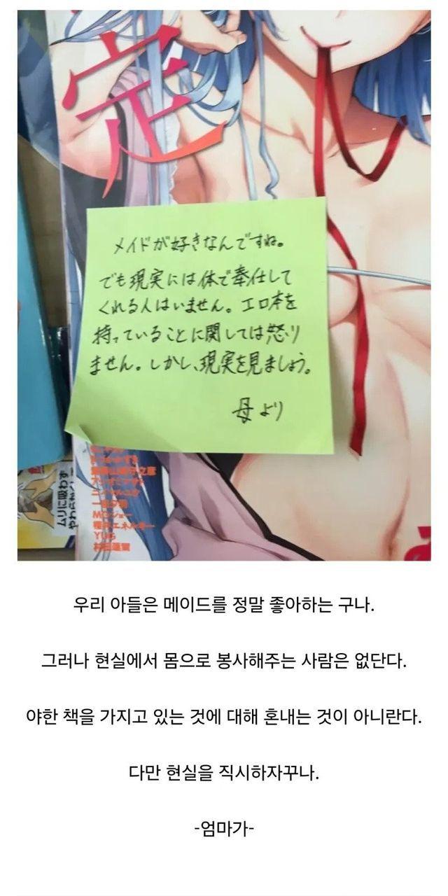 아들의 숨겨놓은 책을 발견한 엄마의 메모