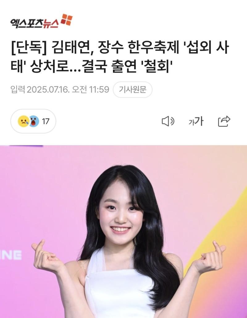 태연, 한우축제 출연 철회