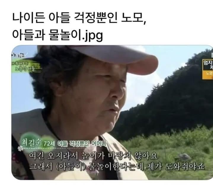 물놀이하고 싶은 아들을 도와주는 노모(72)
