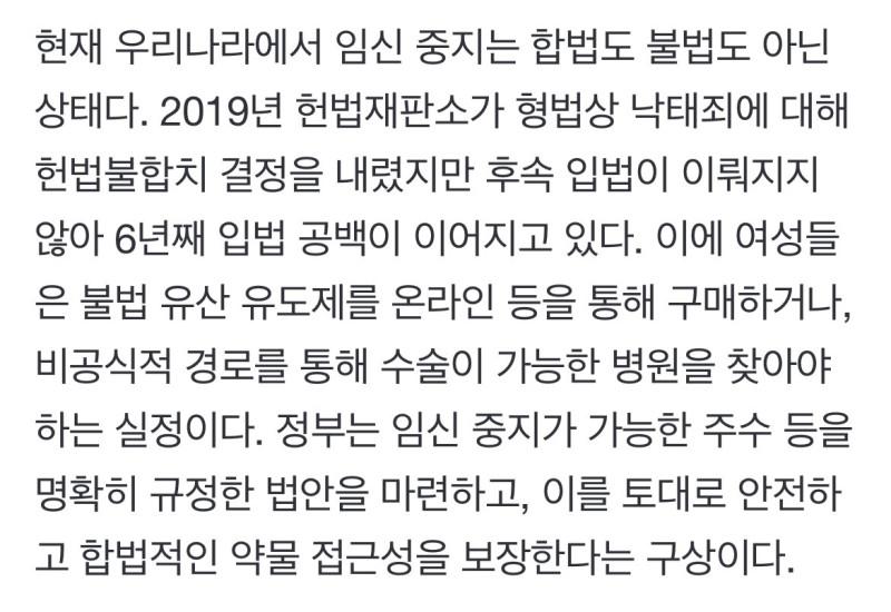 임신 중지(낙태) 약물 합법화 예정