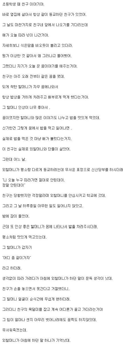 할머니가 밥 차려주는 꿈을 꾸는 친구 #공포 #꿀잼