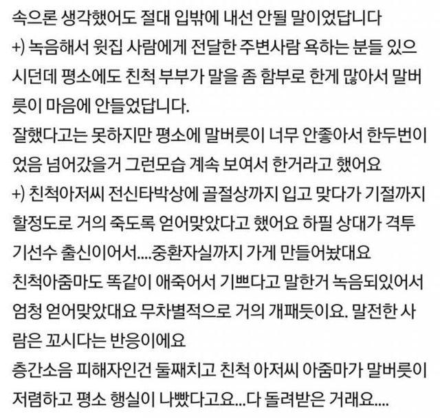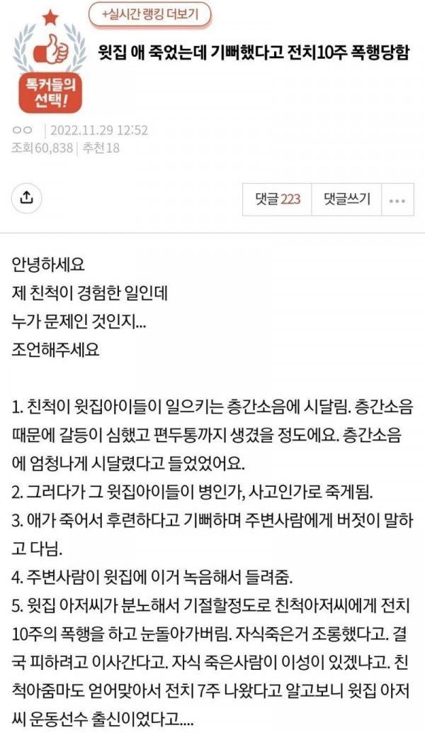 윗집 애 죽었는데 기뻐했다고 전치10주 폭행당함 #층간소음 #가치관