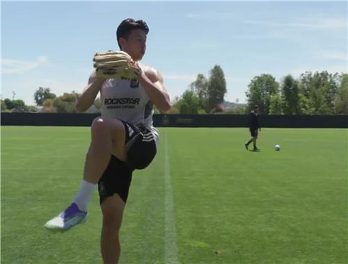손흥민, 다저스전 대비 맹연습…"부드럽게 던지니 쉽더라"