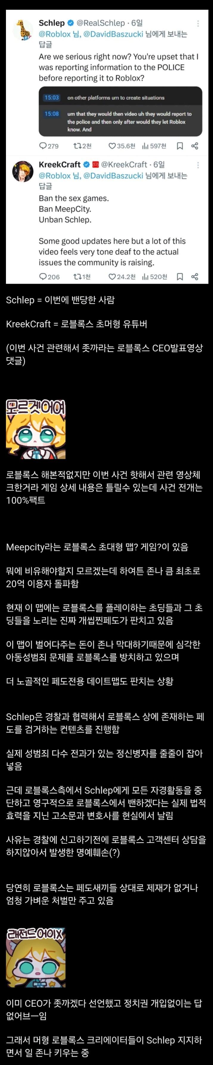 아동성범죄 막는 자경단을 밴시켜버린 로블록스