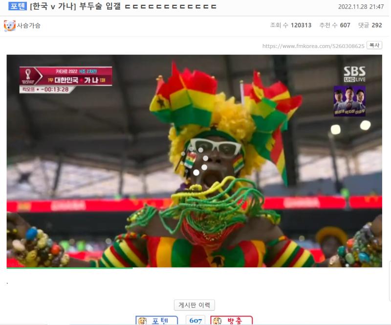 퇴마:물리 한국경기중 가나 관중의 응원(이라 쓰고 부두술이라 읽는) | 제목 | 글쓴이 | 조회수 |