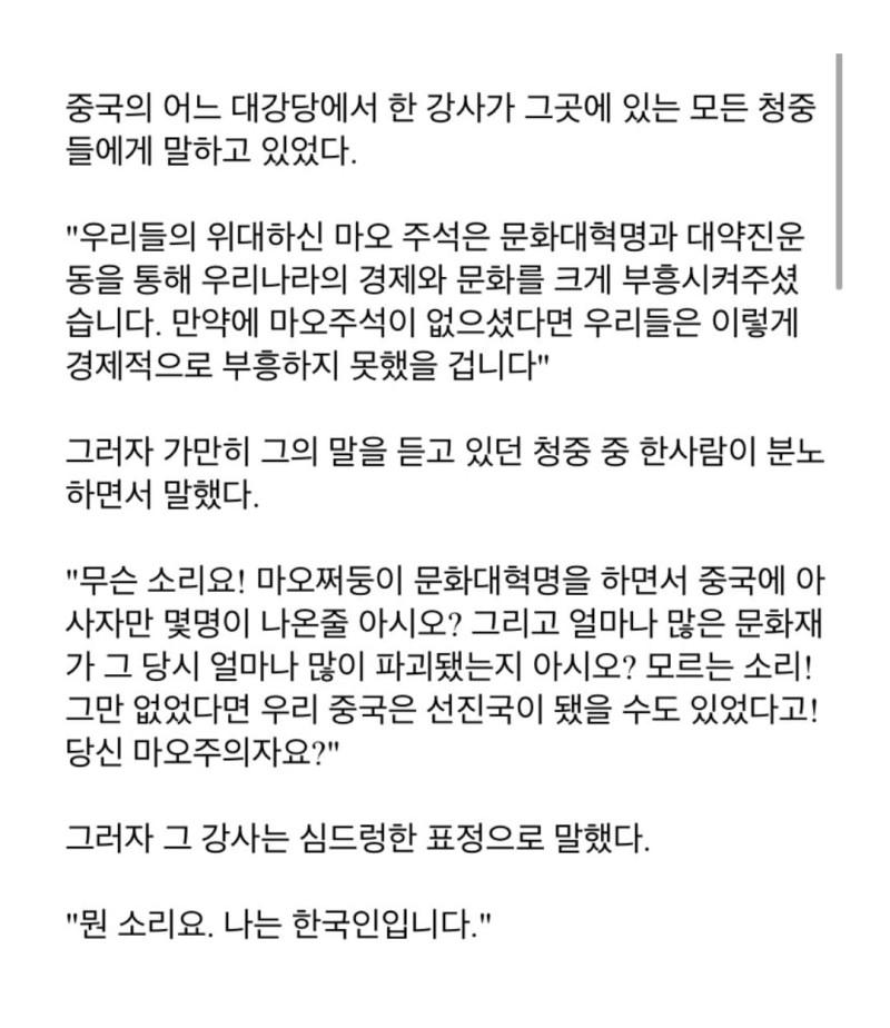 마오쩌둥은 우리나라의 발전에 큰 도움을 줌