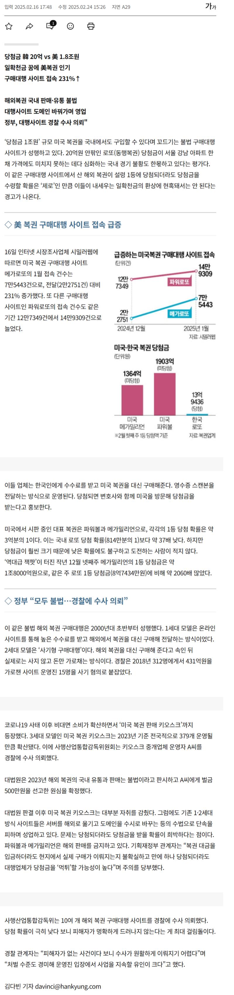 돈벼락 대신 뒤통수…美복권 '불법' 구매대행 주의보