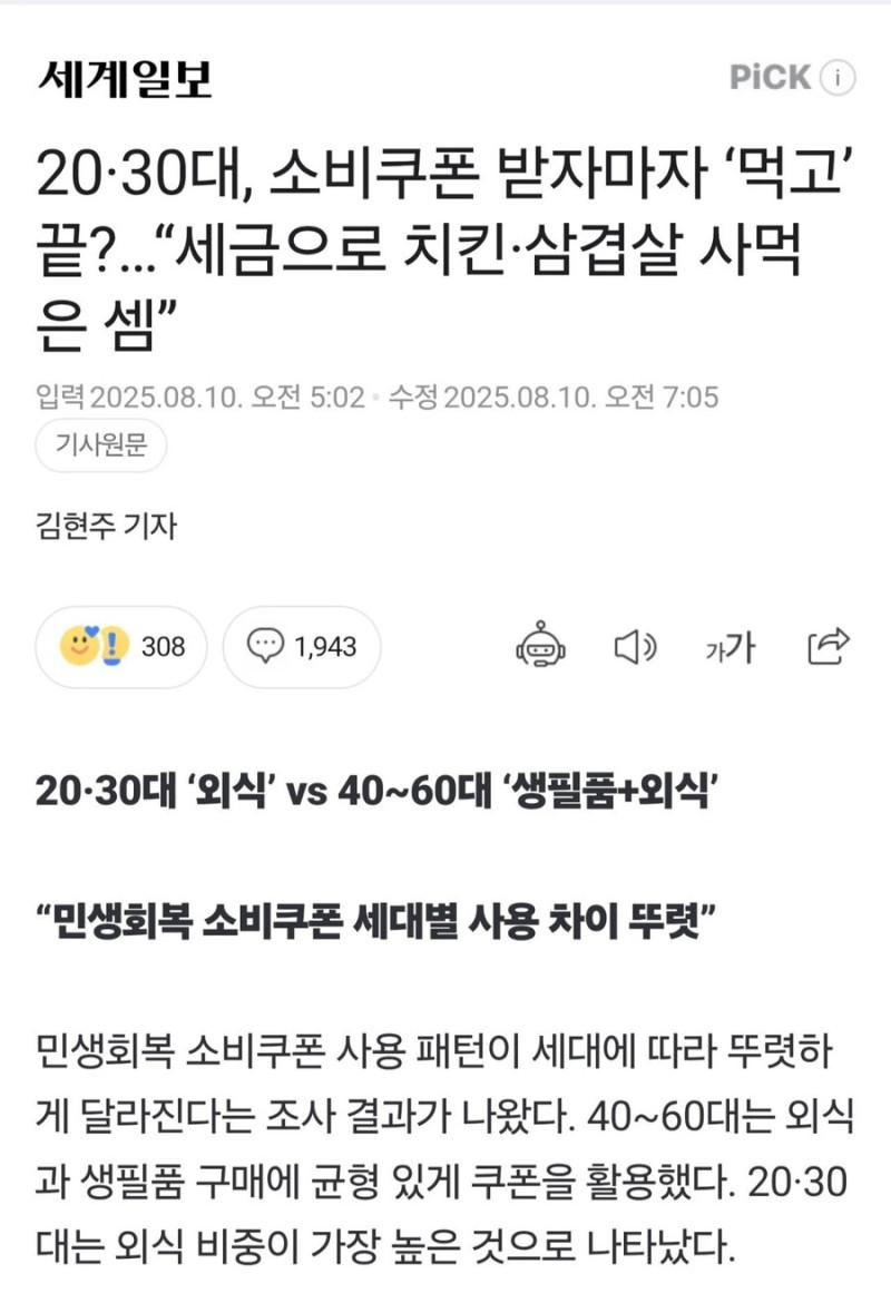 "20,30대 세금으로 치킨, 삼겹살 사먹어.."