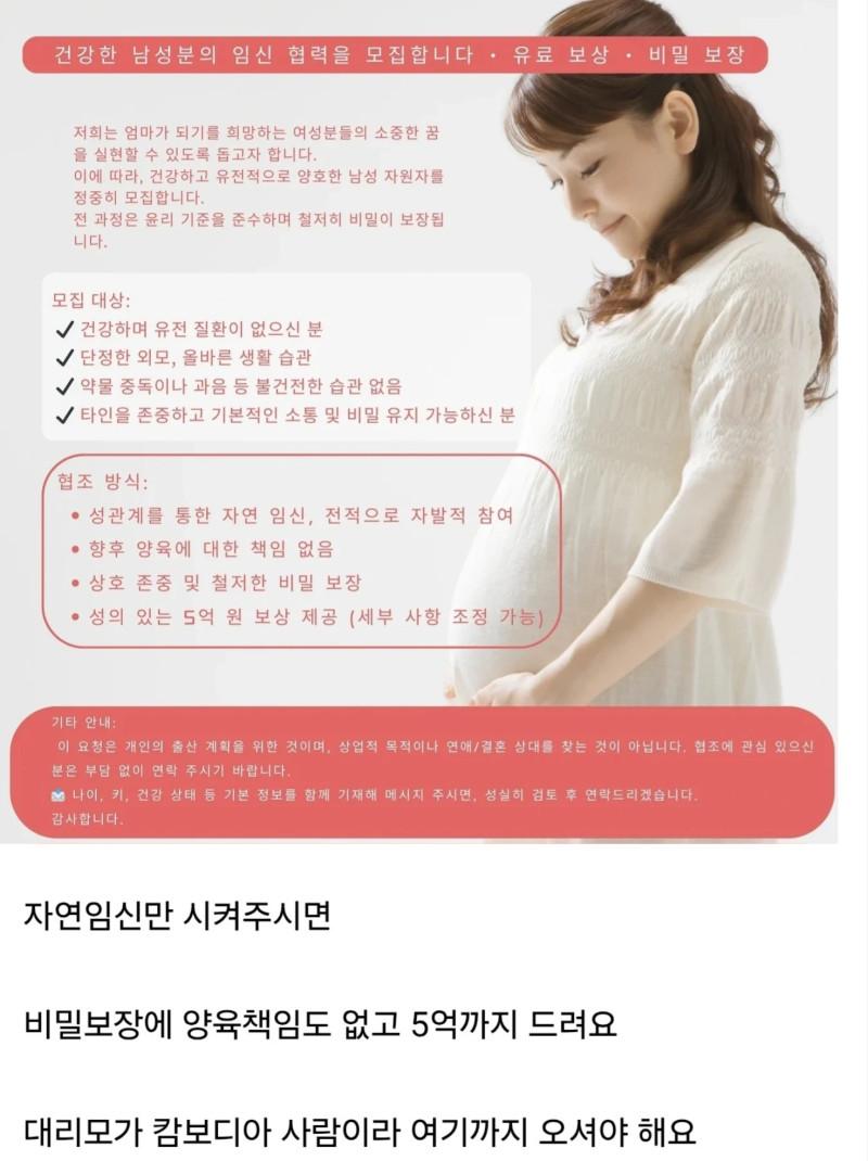 임신 시켜주실분 구합니다. 성공시 5억 드려요