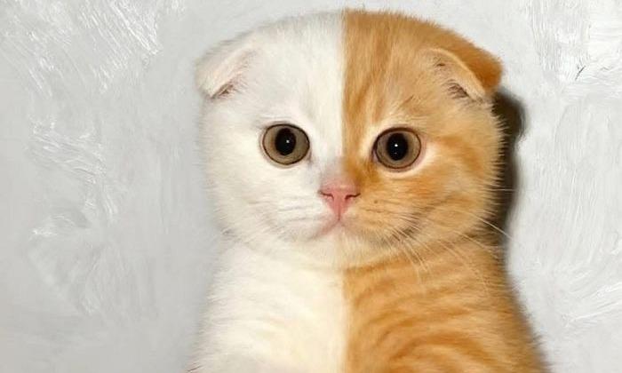 세상에 단 한 마리 ‘반반 고양이’의 비밀 해당 고양이는 만화에나 나올법한 깜찍한 외모로 아직 성체가 되지 않은 새끼 고양이다. 귀가 살짝 접히는 ‘스코티시 폴드’ 종으로 친근한 외모와 사랑스러운 성격 때문에 많은 귀여움을 받는 종이다. ‘스코티시 폴드’는 동그란 얼굴과 동그란 눈, 동그란 체형이 특징으로 날카로운 외모의 여느 고양이들과 달리 선한 인상을 가지고 있다. 사진 속의 ‘반반 고양이’ 또한 순진한 얼굴을 하고 있어, 바라보는 것만으로도 미소를 짓게 만든다.