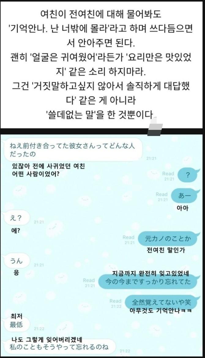 . 막으려고 하지말고 역공을 해 전여친에 대해 물어보면 전남친에 대해 물어봐 내가 먼저 물어봤다고 하면 내가 방금 물어봤다고 해 그러다 헤어지면 그 정도 생물이었을 뿐 상대가 인간이 되었으면 애초에 안 물어봤을거야 ... 솔로천국 커플지옥 | 제목 | 글쓴이 | 조회수 |