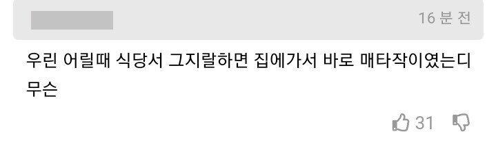 근데 시기를 생각하면 저때 훈육 받은 애들이 부모가 된 시대인데 왜 요즘 이럴까 싶고....  | 제목 | 글쓴이 | 조회수 |