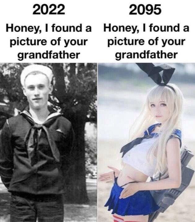 "자기야! 나 자기의 할어버지 사진을 찾았어!"