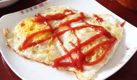 노른자까지 익힌 케첩 뿌린 계란프라이