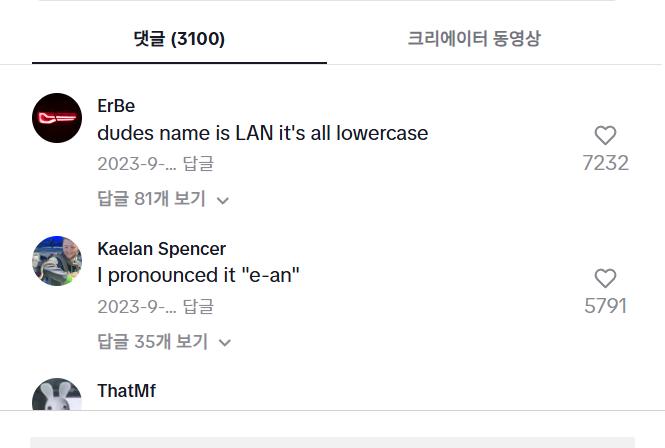??: 다른사람들이 널 어떻게 불러? 직원:대부분사람은들은 이-안으로 불러 ??;ㅋㅋㅋㅋㅋ 직원:대부분 초등학교에서 배운 발음(?)을 잊어버린 녀석들이야! 초등학교 수준을! 저사람 이름은 lan(렌)을 소문자로 쓴거라고함ㅋㅋㅋ 영어잘못해서 손수해석한거라 부족해도이해좀 ㅋ
