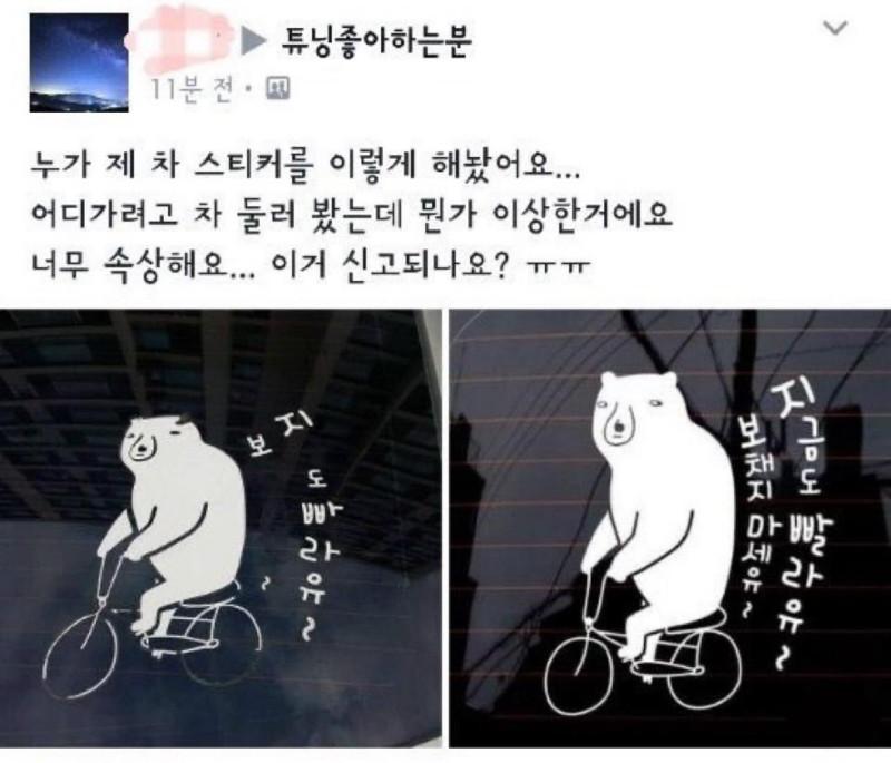 누가 내 차 스티커를 이렇게 해놨어요 ㅜㅜ